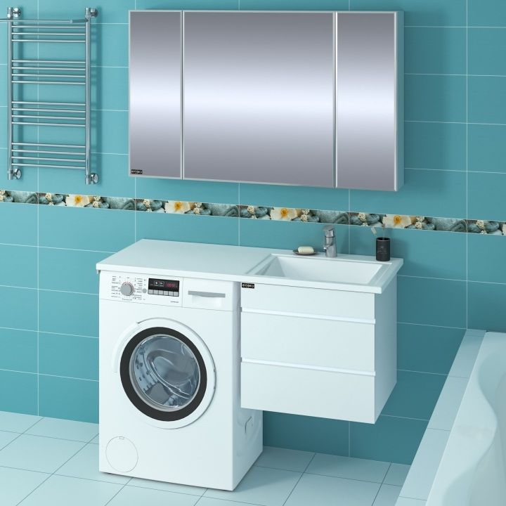 Раковина над стиральной машиной Лидер 120 с подвесной тумбой Санта Марс 56 R
