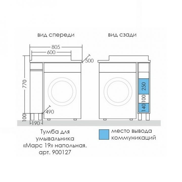 Раковина над стиральной машиной Юпитер 80х50 с напольной тумбой Санта Марс 19 R