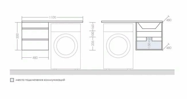Раковина над стиральной машиной Лидер 110 с подвесной тумбой Санта Марс 48 R