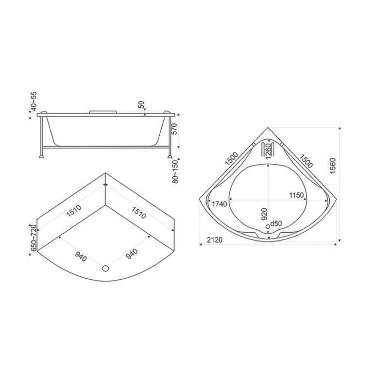 Акриловая гидромассажная ванн BAS Ирис 150х150
