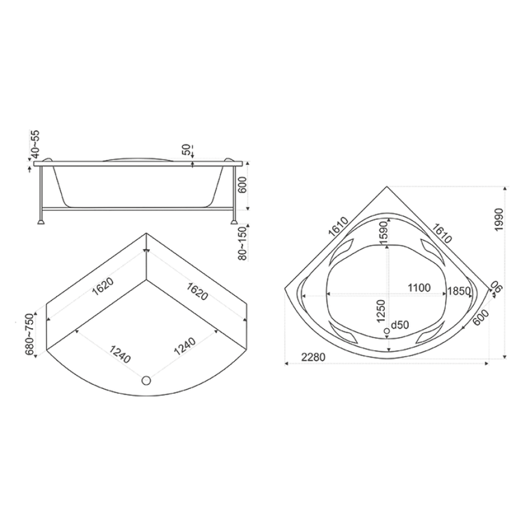 Ванна устанавливается на жесткий металический карскас, окрашенный порошковой краской