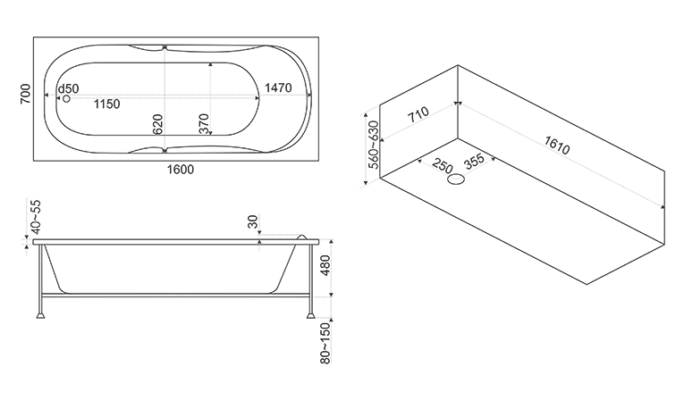 Акриловая гидромассажная ванна BAS Мальдива 160х70