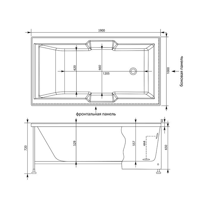 Акриловая ванна Aquanet Vega 190x100 с каркасом