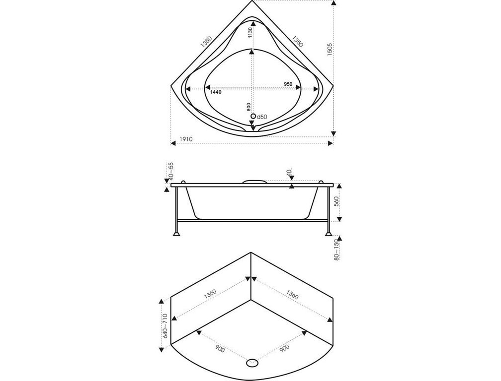 Акриловая Ванна Bas РИОЛА 135х135 с каркасом