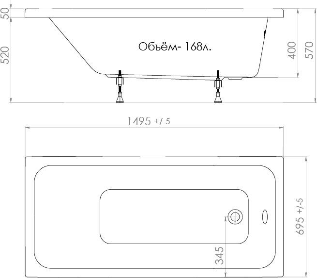 - ВЫСОТА ВАННЫ 570 мм