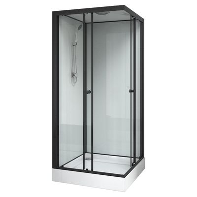 Душевая кабина CS-22110 90x90x(190+15) см с низким поддоном 15см, прозрачное закаленное стекло 5 мм, задние стеклянные стенки БЕЛЫЕ, профиль черный-матовый, верхний душ, хромированный ручной душ + шланг для душа + хромированный держатель (3 места).