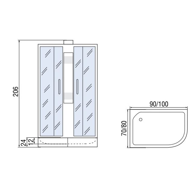 Душевая кабина Мономах Б/К 100/80/24 МЗ R без крыши