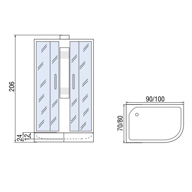 Душевая кабина Мономах Б/К 90/70/24 МЗ L без крыши
