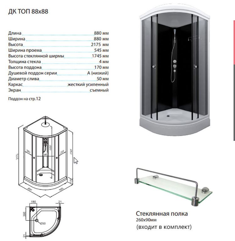 - Габариты (ш.г.в): 88x88x217.5 см
