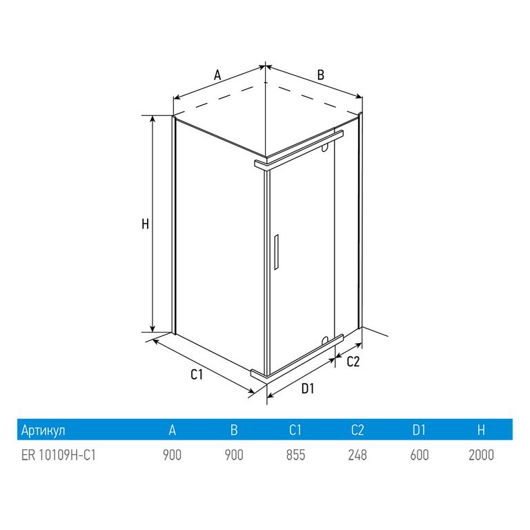 Душевое ограждение ERLIT ER10109H-C1 (90*90*200) квадратное, прозрачное