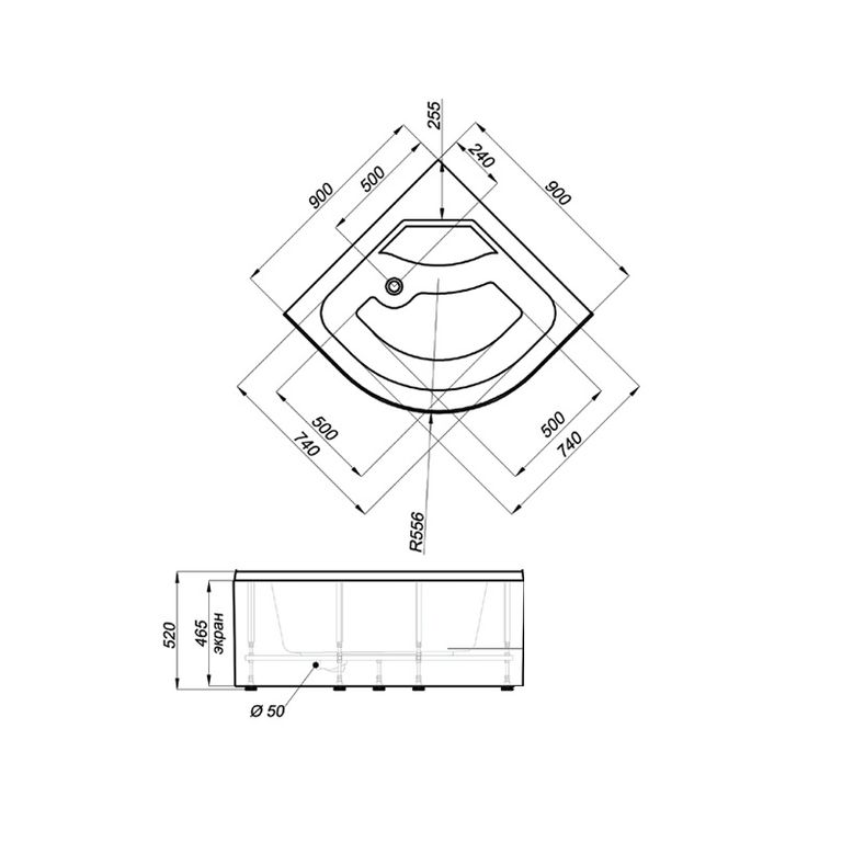 | Форма поддона | Полукруг |