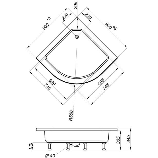 | Глубина поддона | 200 мм |