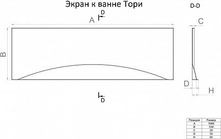Фронтальный экран для ванны 1ACReal Тори 170