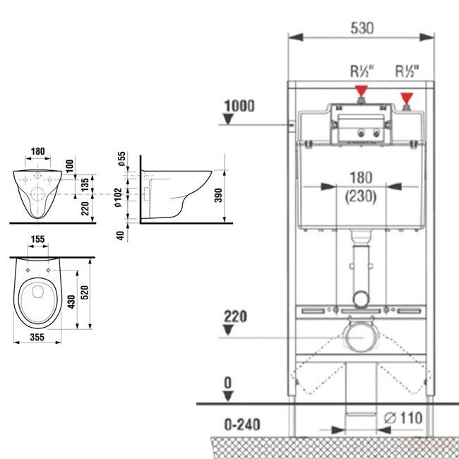 - Тип: комплект (унитаз, инсталяция, кнопка)