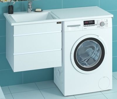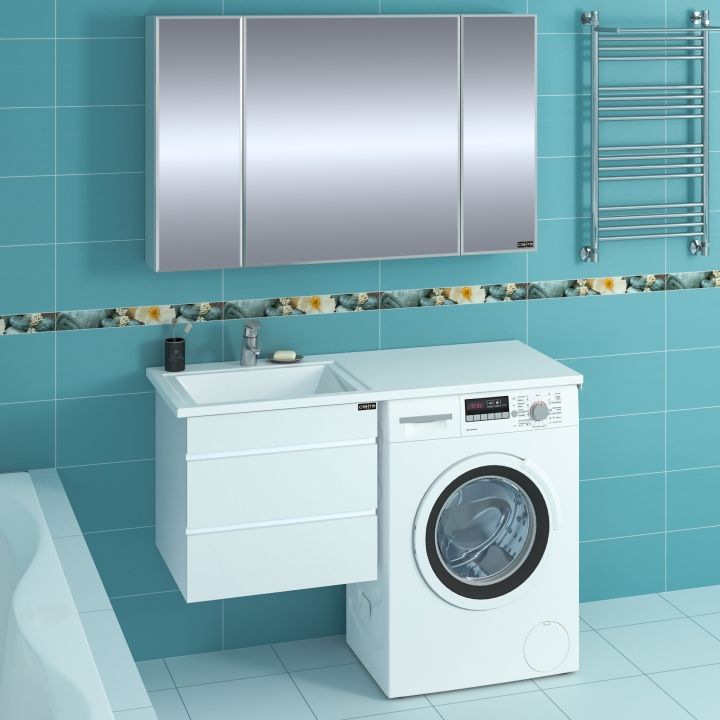 Раковина над стиральной машиной Лидер 120 с подвесной тумбой Санта Марс 56 L