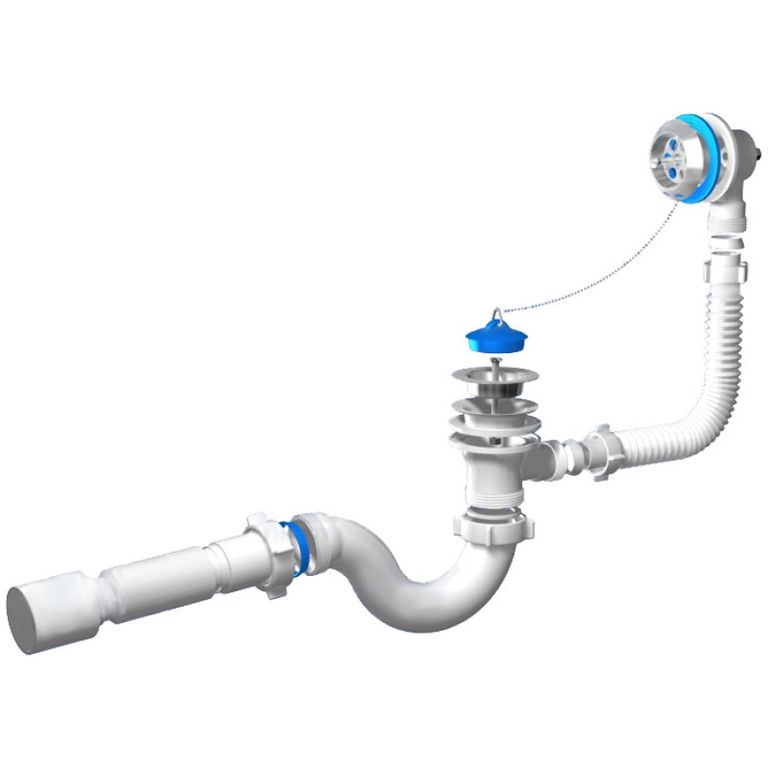 Сифон Ани для ванны с выпуском и переливом 1 1/2" с гибкой трубой 40x50