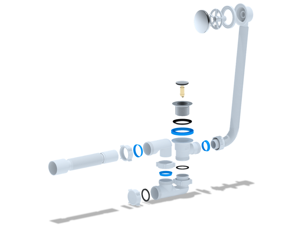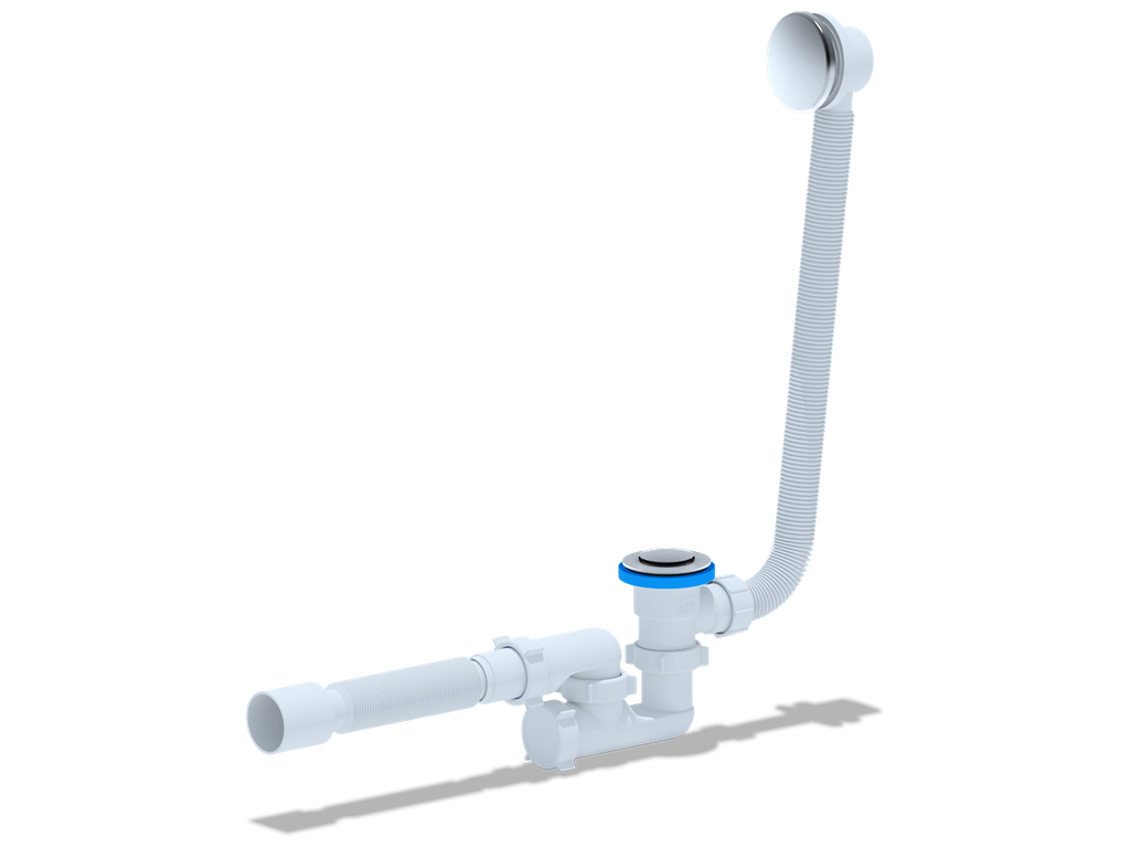 Сифон (обвязка для ванн) полуавтоматического действия( открытие и закрытие спускного клапана осуществляется путем нажатия на сам клапан (технология QUICK-CLAC)). Вентиль и клапан: хромир. нерж.сталь.