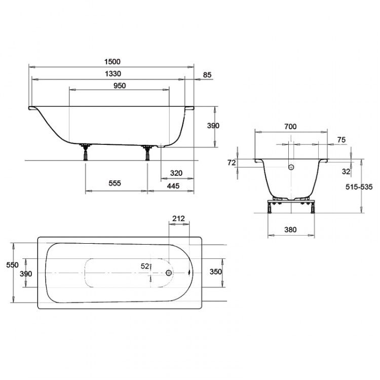 Стальная ванна Kaldewei Eurowa 310 150х70