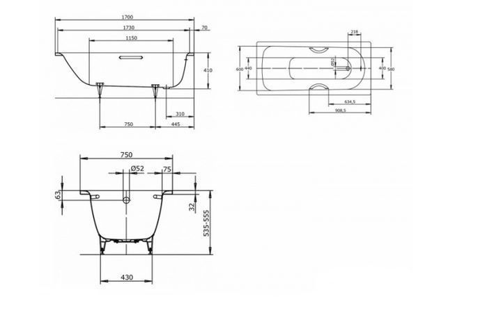 Стальная ванна Kaldewei Saniform Plus 373-1 170х75