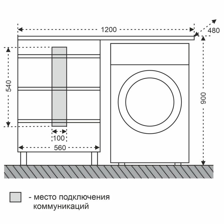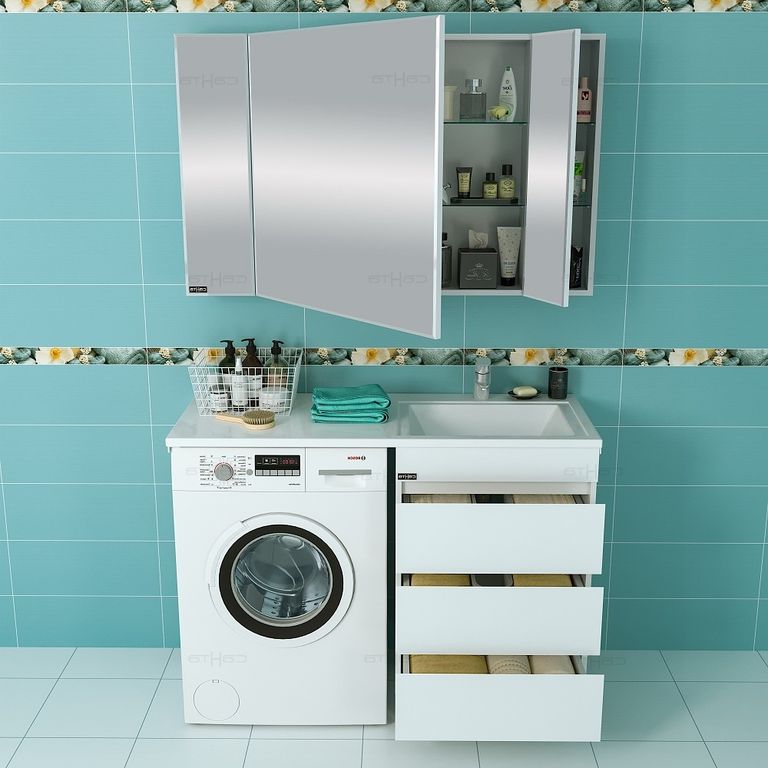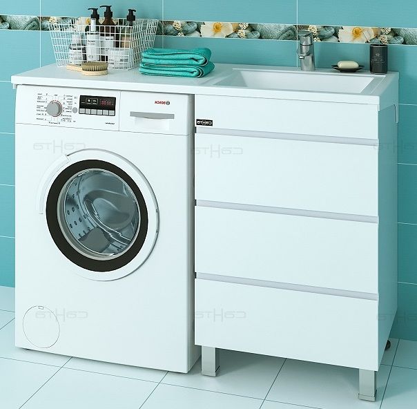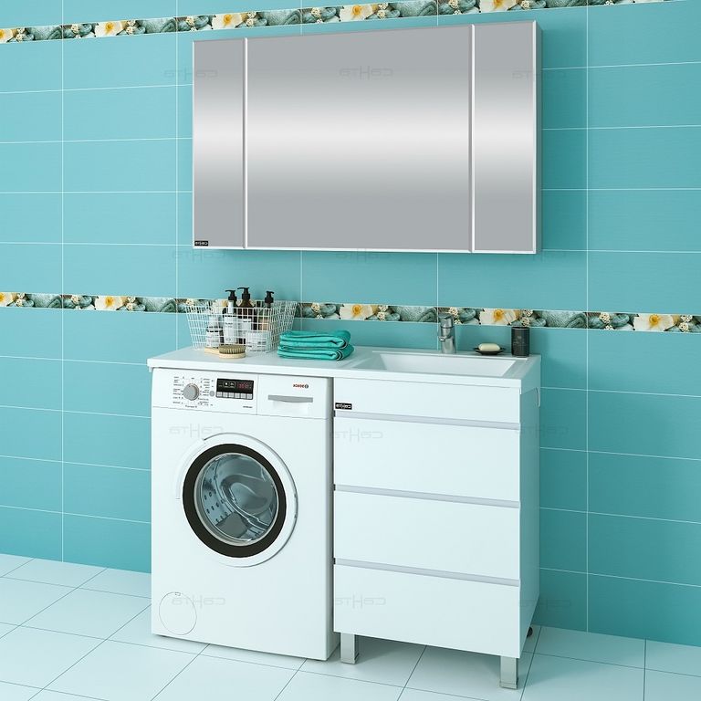 Раковина над стиральной машиной Лидер 120 с напольной тумбой Санта Марс 56 R