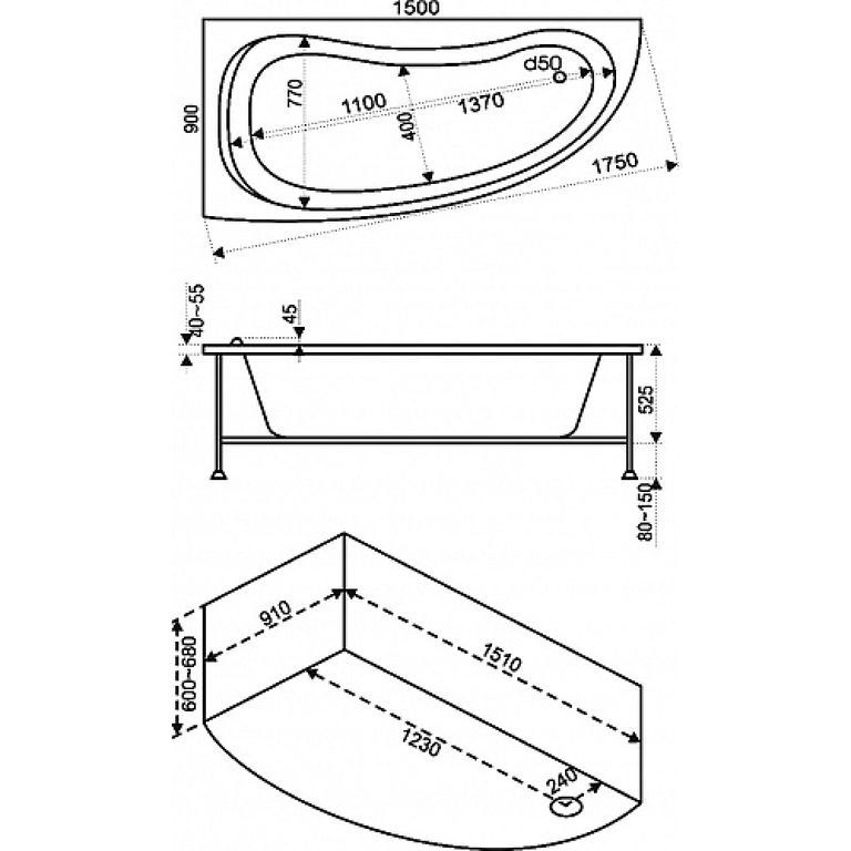Акриловая Ванна BAS АЛЕГРА 150х90 левая, с каркасом