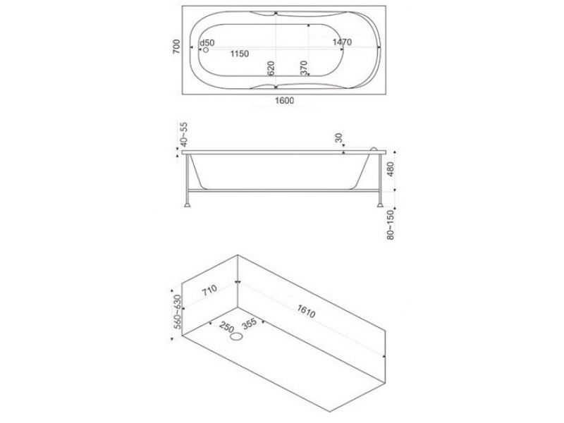 Акриловая Ванна BAS РИО 160х70 стандарт, с ножками