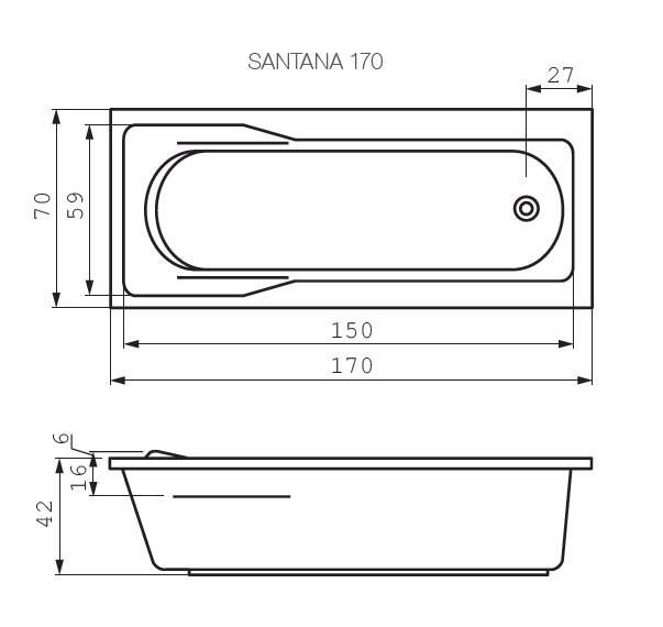 АКРИЛОВАЯ ВАННА CERSANIT SANTANA 170X70